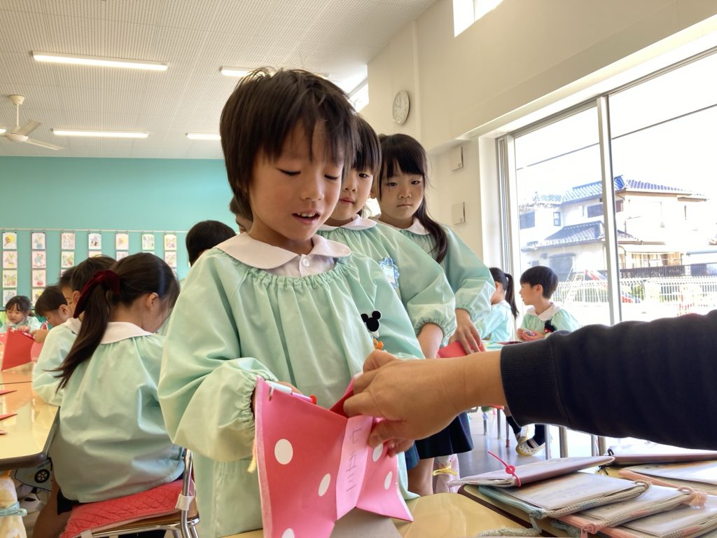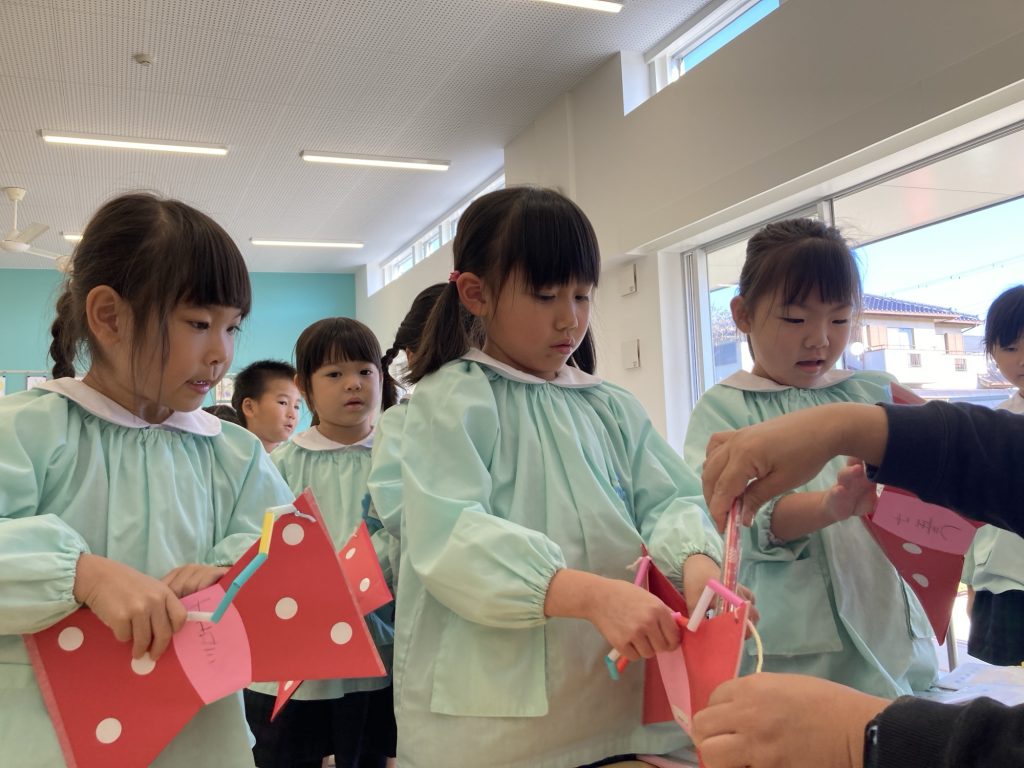 七五三🌸 公開済み: 2025年11月17日更新: 2025年11月17日作成者: suehiroカテゴリー: R7 みんなで七五三バックを製作しました! 千歳飴の由来を知り、赤と白の色の飴を貰いました! 関連記事 おやつ(にじぐみ) 今日のおやつ 🍇ぶ […] 公開済み: 2025年5月30日更新: 2025年5月30日作成者: suehiroカテゴリー: R7 お家のオブジェ🏠 今月の子育て講座は、 […] 公開済み: 2025年11月13日更新: 2025年11月13日作成者: suehiroカテゴリー: R7 水あそび💦 沓脱先生と水あそびを […] 公開済み: 2025年7月9日更新: 2025年7月9日作成者: suehiroカテゴリー: R7 この投稿へのトラックバック トラックバックはありません。 トラックバック URL