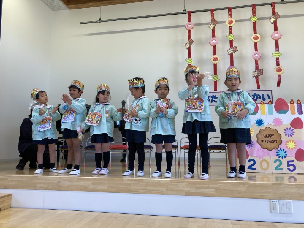 12月お誕生会 公開済み: 2025年12月12日更新: 2025年12月12日作成者: suehiroカテゴリー: R7 今日は12月のお誕生会を行いました!みんなしっかりと発表ができて素敵でした🎵12月生まれのお友達お誕生日おめでとうございます😊 今月はゆき組さんが「いちごサンタクロースと踊りましょう」を踊ってくれました♪とても可愛かったです🍓 関連記事 11月お誕生日会🎂 公開済み: 2025年11月21日更新: 2025年11月21日作成者: suehiroカテゴリー: R7 1月お誕生会🎂 今日は一月のお誕生会 […] 公開済み: 2026年1月23日更新: 2026年1月23日作成者: suehiroカテゴリー: R7 お家のオブジェ🏠 今月の子育て講座は、 […] 公開済み: 2025年11月13日更新: 2025年11月13日作成者: suehiroカテゴリー: R7 この投稿へのトラックバック トラックバックはありません。 トラックバック URL