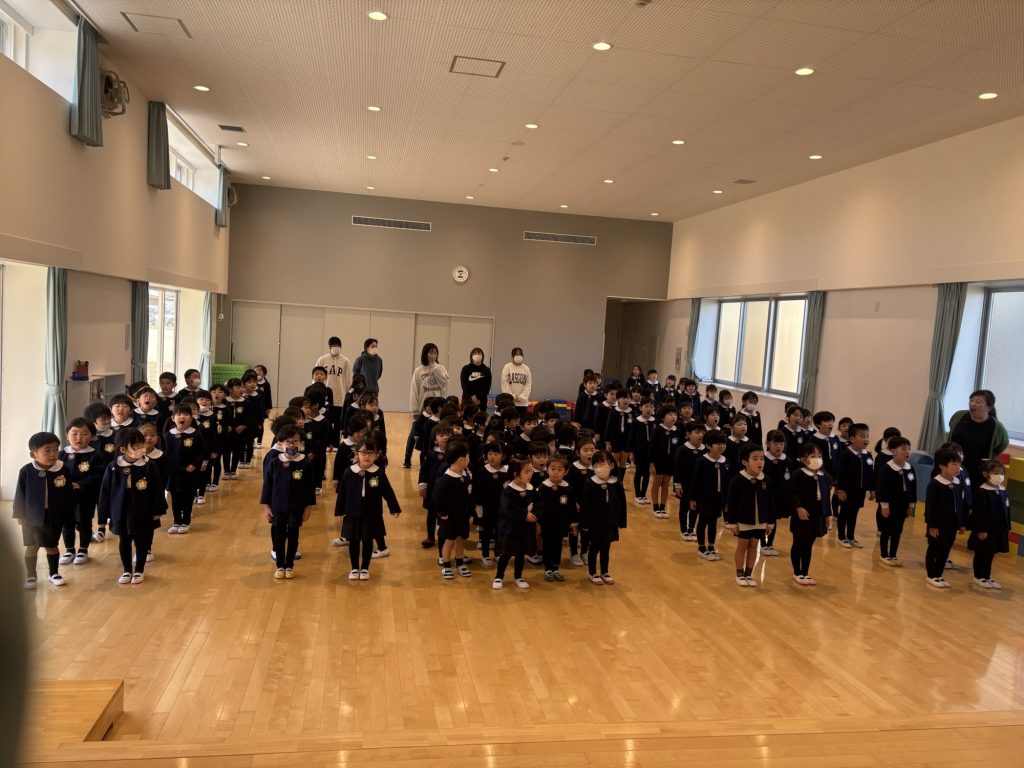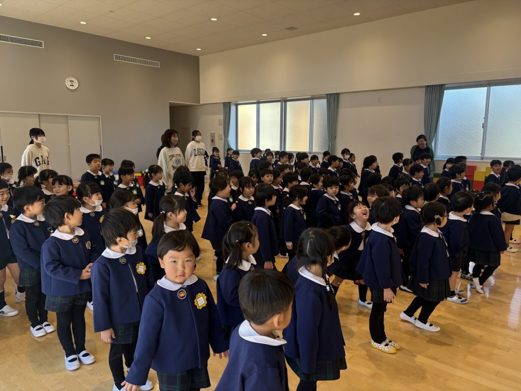 3学期始業式☃️ 公開済み: 2026年1月9日更新: 2026年1月9日作成者: suehiroカテゴリー: R7 冬休みが終わり3学期の始業式を行いました。 冬休みの思い出を嬉しそうに話す子どもたちでした! 年長組は幼稚園最後の3学期となりました。大きく成長した子ども達ですが、最後に幼稚園でたくさんの思い出を作って欲しいと思います💐 関連記事 体操(年中組) 沓脱先生と体操を頑張 […] 公開済み: 2025年9月17日更新: 2025年9月17日作成者: suehiroカテゴリー: R7 にじぐみ🌈 色水遊びをしました✨ […] 公開済み: 2025年9月8日更新: 2025年9月8日作成者: suehiroカテゴリー: R7 親子遠足(レゴランド)🚌 保護者の皆様、ご協力 […] 公開済み: 2025年9月17日更新: 2025年9月17日作成者: suehiroカテゴリー: R7 この投稿へのトラックバック トラックバックはありません。 トラックバック URL
