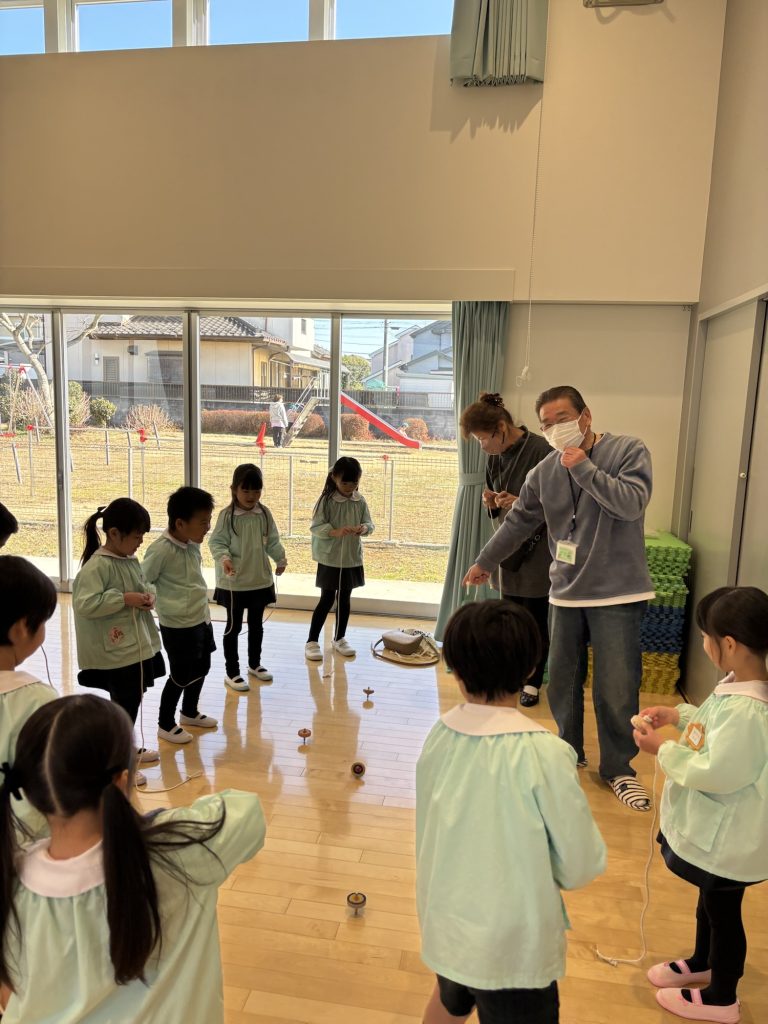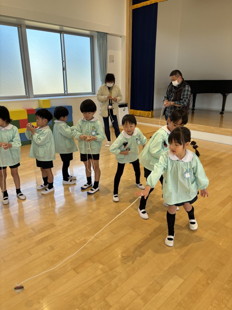 お正月の会🎍 公開済み: 2026年1月26日更新: 2026年1月26日作成者: suehiroカテゴリー: R7 今日はお正月の会を行い、年少組はお正月の歌を発表し、年長、年中組は難易度の異なるコマに挑戦しました。 おじいちゃん、おばあちゃんがコマの回し方を教えてくださいました! 子ども達も昔遊びに触れるとても良い機会でした! 関連記事 鍵盤ハーモニカ🎹 年長組は、鍵盤ハーモ […] 公開済み: 2025年6月23日更新: 2025年6月23日作成者: suehiroカテゴリー: R7 にじぐみ🌈 色水遊びをしました✨ […] 公開済み: 2025年9月8日更新: 2025年9月8日作成者: suehiroカテゴリー: R7 1月お誕生会🎂 今日は一月のお誕生会 […] 公開済み: 2026年1月23日更新: 2026年1月23日作成者: suehiroカテゴリー: R7 この投稿へのトラックバック トラックバックはありません。 トラックバック URL